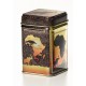 Boîte métal carrée, aux couleurs de l'Afrique, sobre et chaleureuse.