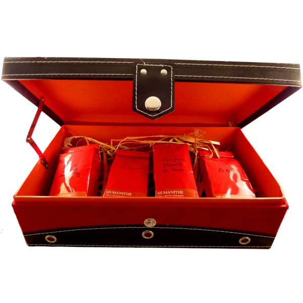 Joli coffret en velours rouge de dégustation de 4 grands types de thés de Chine nature biologiques : Sencha, Lung Ching, Oolong et Pu Erh. Les sachets contiennent chacun 50g de thé(photo non contractuelle).