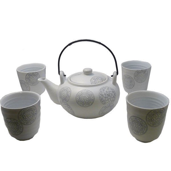 Très beau service à thé chinois, composé d'une théière de contenance 0,8l, de 4 grands bols (0,2l) , le tout présenté dans un beau coffret noir.