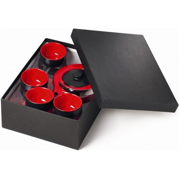 A découvrir dans ce coffret une jolie théière de 0.35l en porcelaine de Chine, accompagnée de ses 4 bols de 0,07l et d'un set de dégustation.